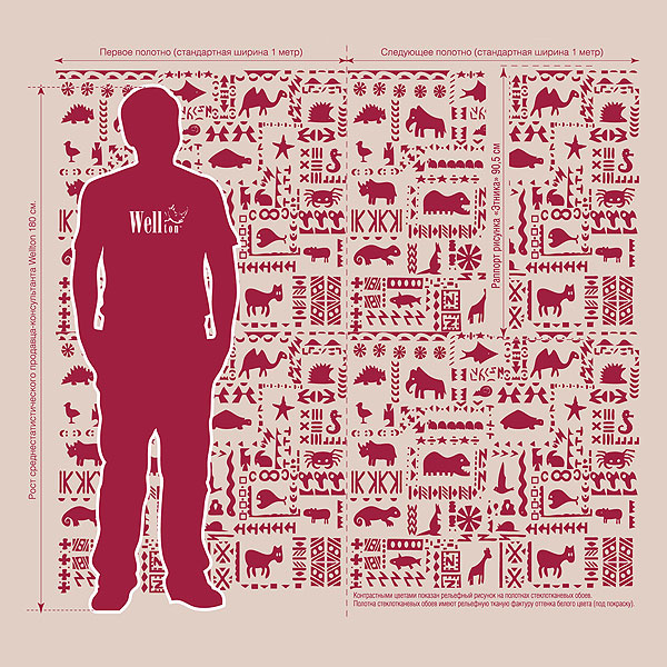 Дитячі серії. Полотна прикрашені стилізованими фігурками тварин, що переплітаються з яскравим національним орнаментом в африканському стилі. Рапорт 90,5 см.