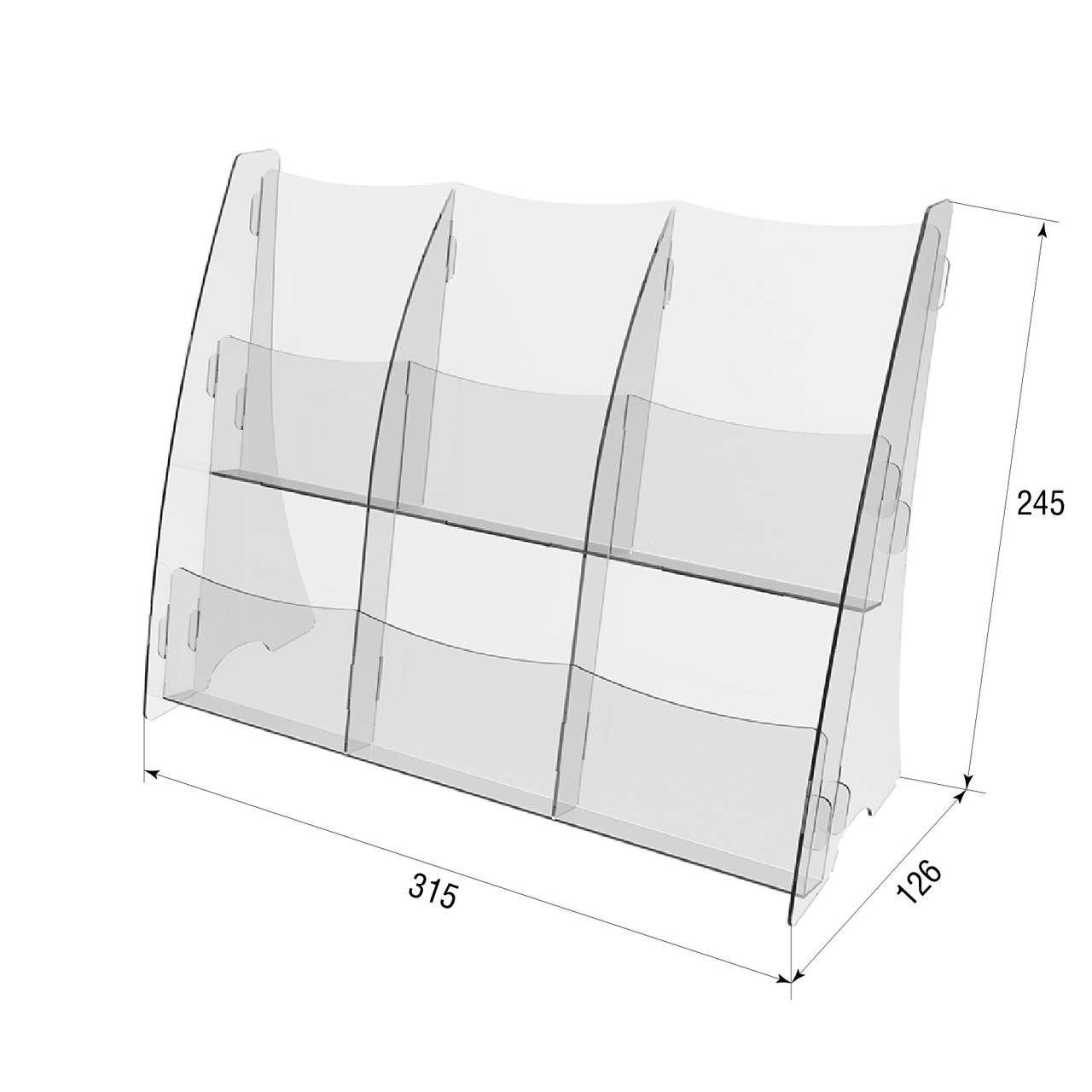 Міцність та довговічність: Виготовлена з високоякісного акрилу, буклетниця має відмінну стійкість до ударів, подряпин та пошкоджень, що гарантує її довговічність.