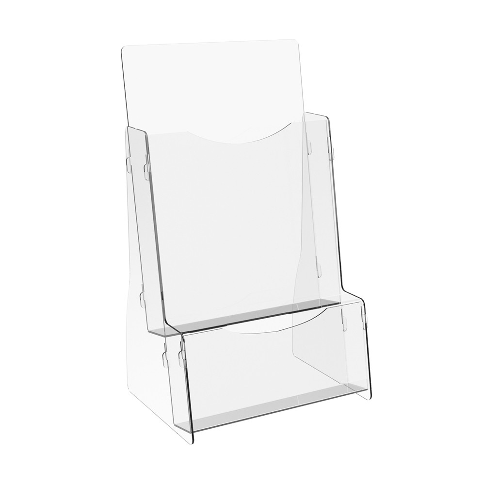 Міцність та довговічність: Виготовлена з високоякісного акрилу, буклетниця має відмінну стійкість до ударів, подряпин та пошкоджень, що гарантує її довговічність.