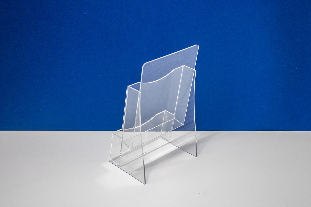 Буклетниця з акрилу – це елегантне та функціональне рішення для зберігання та представлення брошур, листівок, меню чи інших промо-матеріалів. Виготовлена із прозорого акрилу високої якості, вона забезпечує чудову видимість та захист вашого контенту, привертаючи увагу клієнтів.