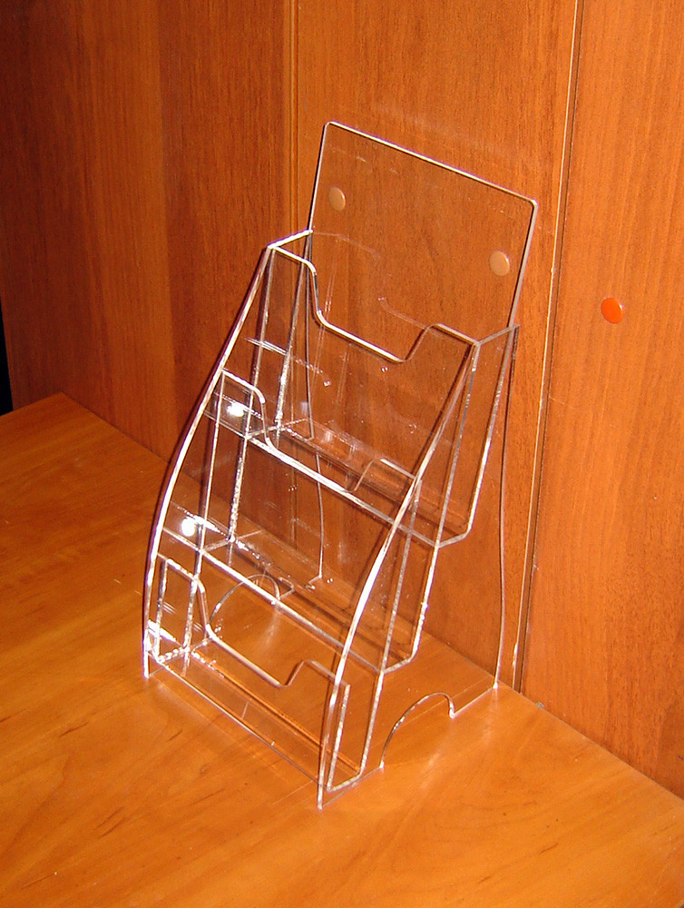 Простота догляду: Буклетниці з акрилу легко чистяться та підтримуються в хорошому стані за допомогою м'якої тканини та ніжного миючого засобу.