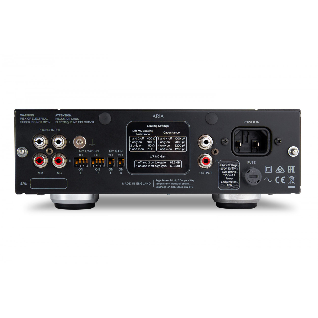 Rega Aria – це "повністю аналоговий підсилювач" без цифрових схем керування. Повністю алюмінієвий корпус екранує внутрішню схему будь-яких паразитних радіочастотних сигналів. Конструктори уникнули включення зайвих пристроїв, оскільки вони заважають проходженню сигналу та погіршують якість звучання. В Aria реалізовано безліч інноваційних конструкторських ідей, включаючи сервоконтролер, що самоналаштовується, який підтримує оптимальний режим роботи вхідного ланцюга МК, компенсуючи будь-які коливання температури навколишнього середовища або робочої температури.