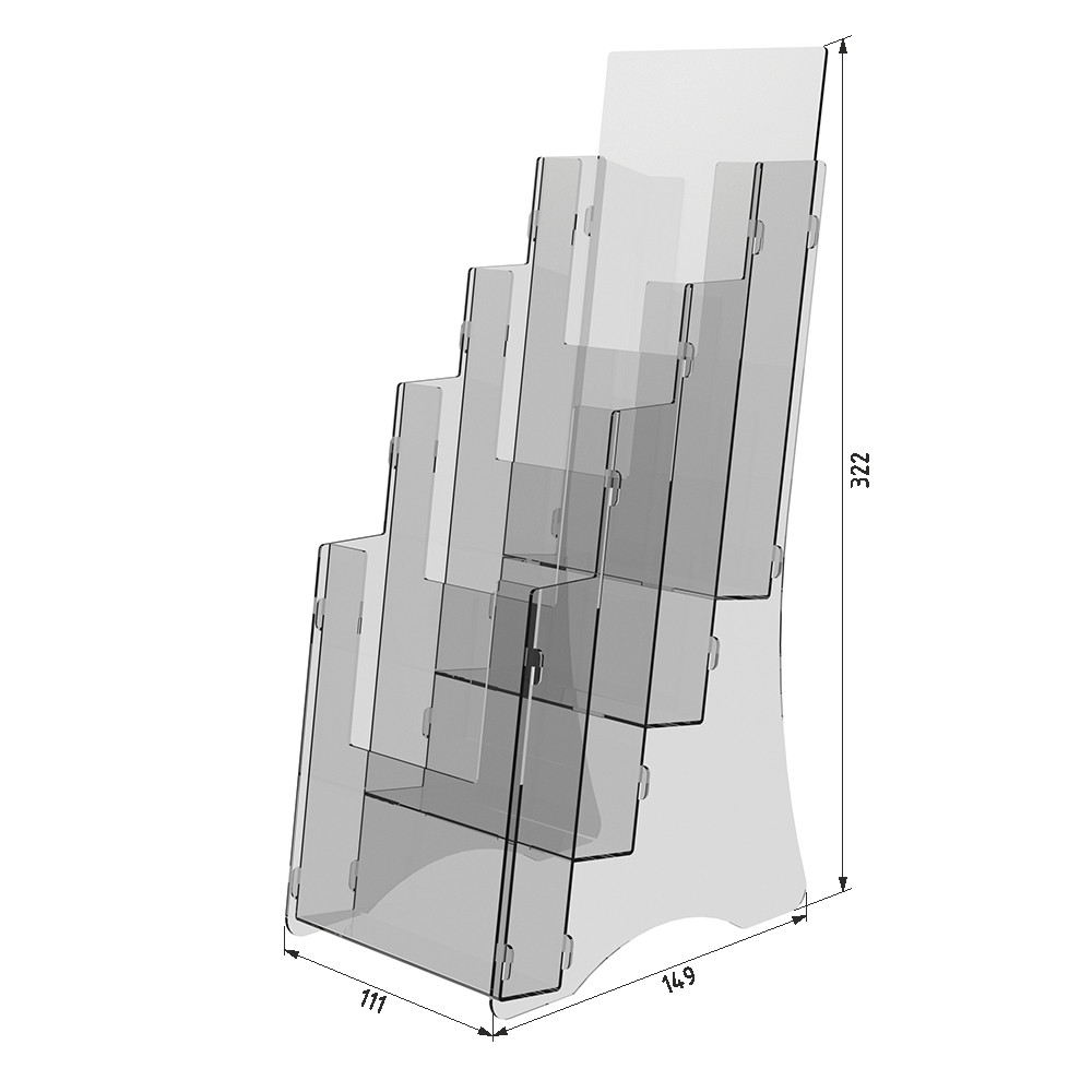 Простота догляду: Буклетниці з акрилу легко чистяться та підтримуються в хорошому стані за допомогою м'якої тканини та ніжного миючого засобу.