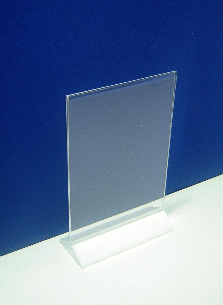 Менюхолдер (тейбл тент) А5 вертикальний з білим підставою. Призначення - наочне розміщення інформації на аркушах формату А5 (148х210).