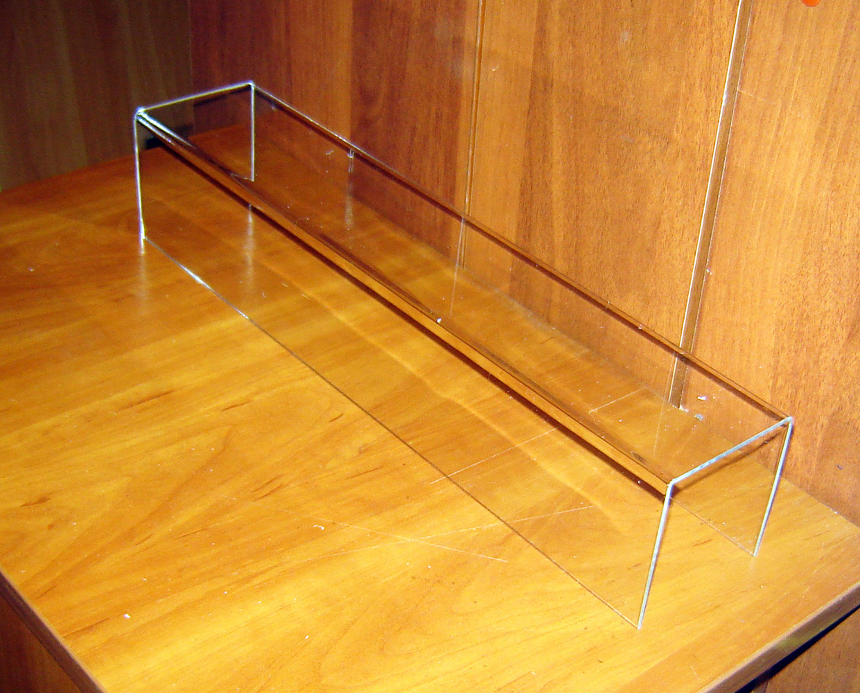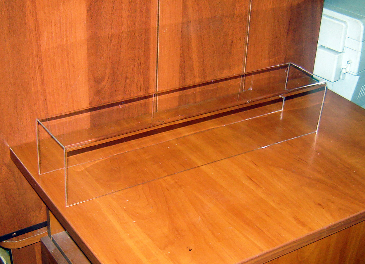 Настільна підставка "Подіум П-обр 500х100х100". Розміри габаритні. Матеріал - оргскло (акрил) 3мм прозоре. Призначення - підставка під широкий спектр товарів.