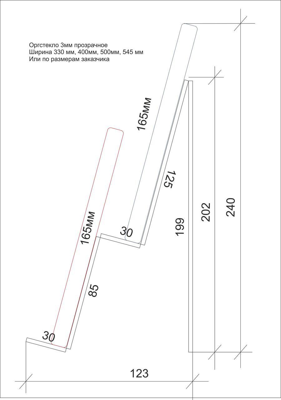 Гірка 2-х ярусна для чохлів. Матеріал - оргскло (акрил) 3мм прозоре. Підходить для полиць не нижче 250 мм Стандартна ширина 330, 400, 500, 545мм або за розмірами замовника.