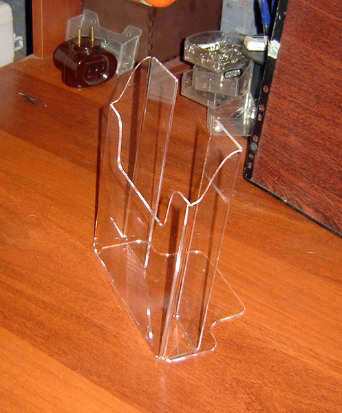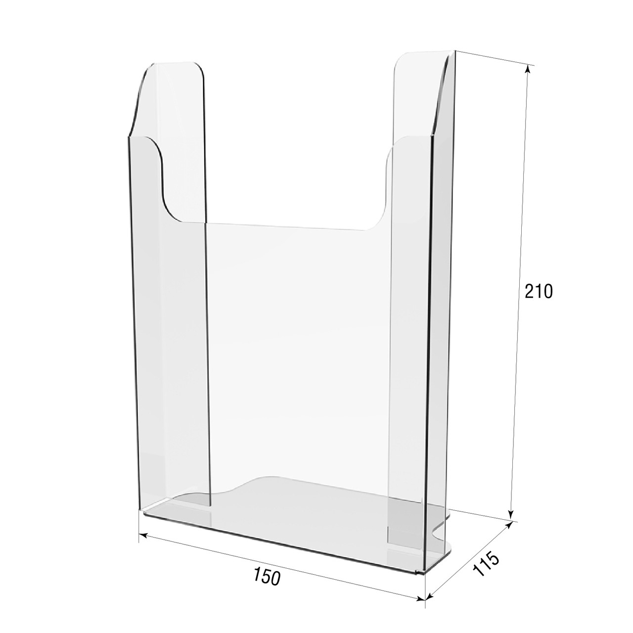 Підставка під буклети А5. Матеріал - оргскло 2мм прозоре. Внутрішня ширина 153 мм, глибина 30мм.