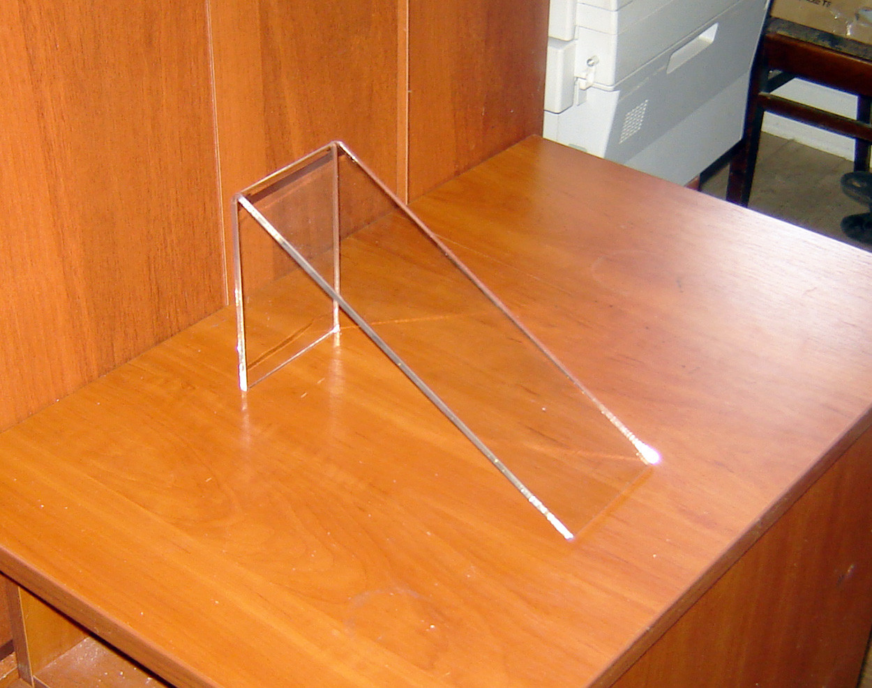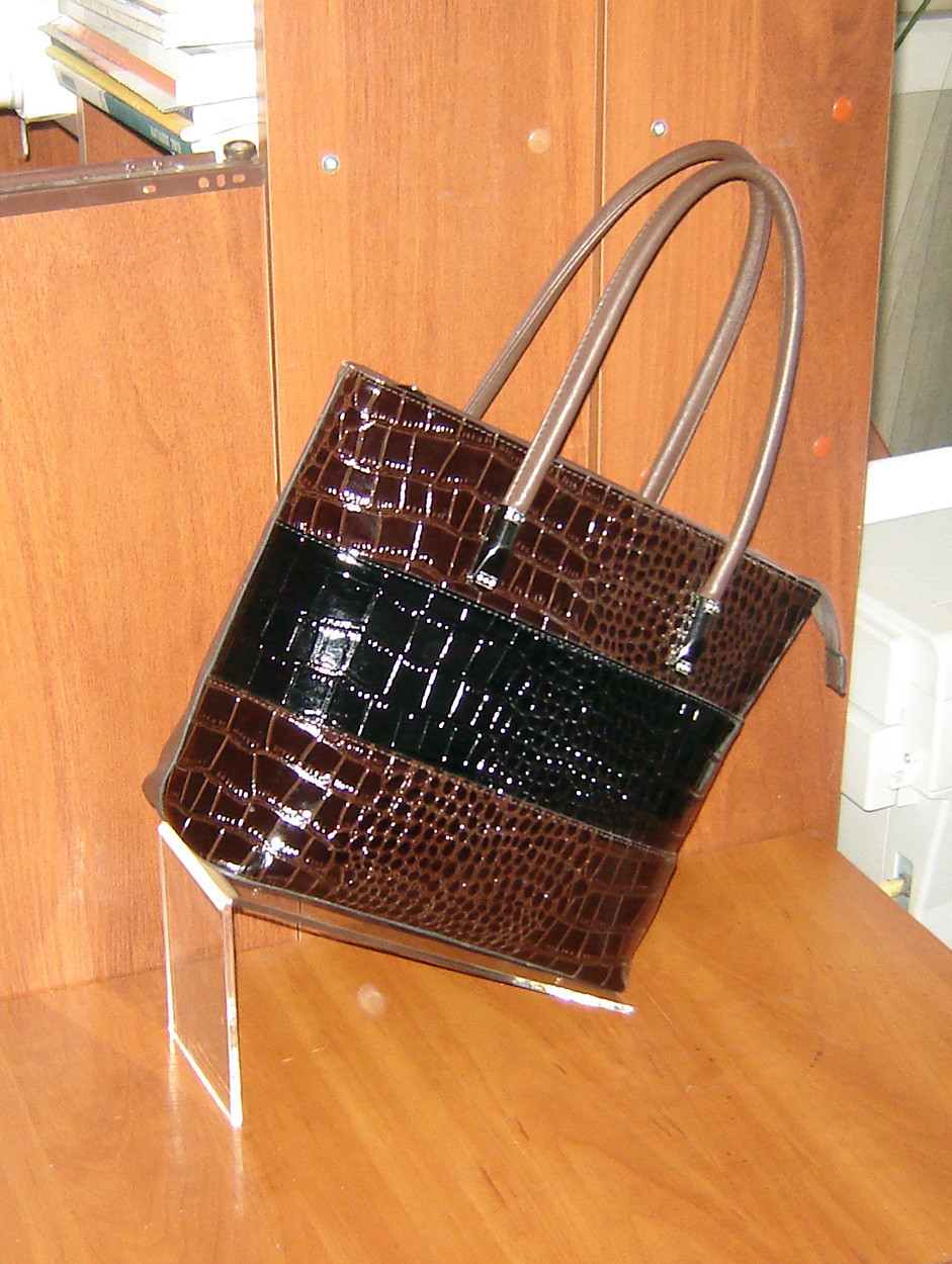 Подставка под сумку наклонная. Ширина 100мм. Материал - оргстекло (акрил) 5мм прозрачный.